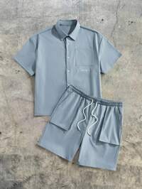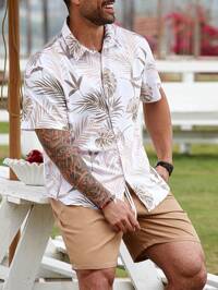 in Button Front Men Plus Size Shirt Sets
