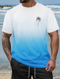 Miesten plus-koon palmukuvioinen pyöreä kaula-aukkoinen kevyt lyhythihainen rento T-paita, kesä
