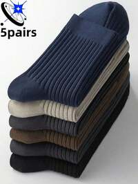 5 Pairs Upgraded Thick Striped Mid-Calf Socks, Suitable For Warmth, Casual, Home, Outdoor, Sports, Continuous Warmth For Men And Women, Super Elastic, Soft, Thick, Breathable, Odor-Resistant, Anti-Bacterial, Suitable For Daily Life #2 Bestseller