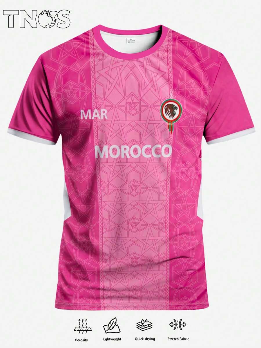 Morocco Men's Soccer Jersey & Outdoor Sports Fitness Running Soccer T-Shirt, Suitable For Soccer Training, Match, Soccer Enthusiasts, Men's Gift