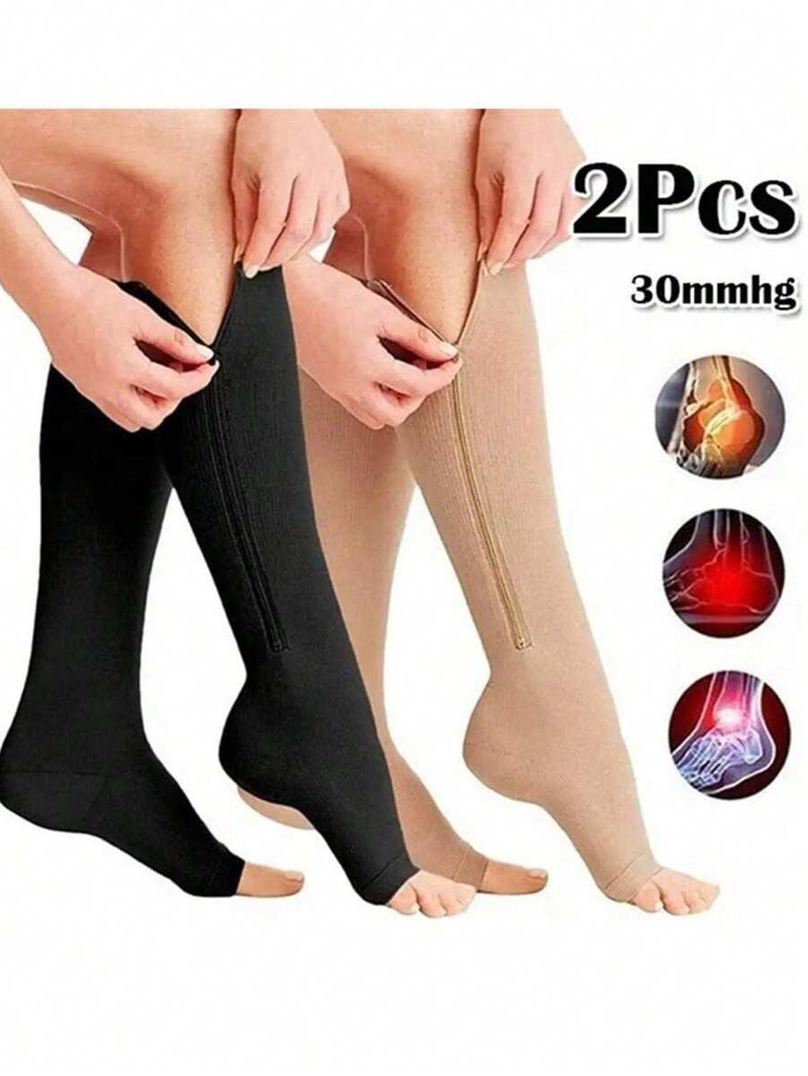 Open Toe Compression Socks, Zipper Conpression Socks Men Women Support Knee Zipper Female Open Toe Thin Anti High Socks Leg Socks,Hot Knit Fabric, For All Seasons, Hand Wash, Solid Color, Zipper Closure, For Running And Sports