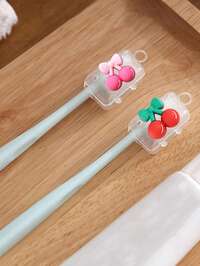 2 бр. преносим калъф за четка за зъби с дизайн на череша, сладък черешов мотив с прозрачно бяло, кутия за съхранение на четка за зъби за пътуване, преносима щипка за защита на главата на четката за зъби, щипка за съхранение на четка за зъби, защитен калъф за четка за зъби, предпазва главата на четката за зъби, преносим дизайн за лесно носене, прахоустойчив калъф за глава на четка за зъби за пътуване, най-добрият подарък за влюбени, приятели, семейство, учители, любители на пътуването, задължителен за дома, общежитието