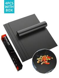 1pc/4pcs Non-Stick Baking Mat, Reusable Outdoor BBQ Pad, Easy To Clean, With Storage Box, Suitable For Home, Restaurant, Camping, Fit For Electric Oven, Gas Oven, Toaster, Grill, Kitchen Tool, Heat Resistant BBQ Grilling Mats - High Temperature Resistant, Non-Stick, Easy To Clean And Durable - Oven Mat, Microwave And Baking Kitchen Pad For Cookies, Pizza, Pastries, Roasting, Broiling - Perfect For Home, Restaurants, Outdoor Barbecues, And Camping, Compatible With Electric Ovens, Microwave, Gas Ovens, Toasters, And Grills - Kitchen Essentials, Party Supplies