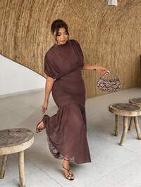 SHEIN Essnce Бебешка рокля за жени с големи размери, широка рокля, лятна рокля с къс ръкав, широки и удобни дрехи с големи размери, рокля с щампа, рокля за почивка, ежедневни рокли за жени, рокля за завръщане у дома, ежедневна рокля, църковни рокли за жени, ежедневна рокля, тоалети за учители с пола тип "балон", есенни тоалети за жени, работна рокля, рокля за излизане, ежедневни рокли #1 Най-продавани