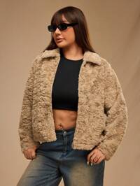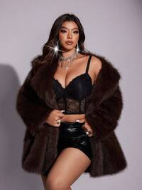 RefloraReflora Curve Plus Size Women's Coffee Brown Lapel Long Sleeve Imitation Rabbit Fur Coat With Lining, High Quality Fabric, Warm, Comfortable And Soft, Christmas, New Year, Thanksgiving Warm, Comfortable And Soft, With Lining, High Quality Fabric, Comfortable And Warm From The Cold, Winter For Women, Vintage, Going Out, Fall, Winter ,Suitable For Multiple Occasions,2025 New, Fall For Women , Autumn , Winter , Christmas Women's ,Saudi National Day , New Year Women's , New Year Look, Zip Up, Faux Fur Coat, Thanksgiving For Women, Brown