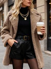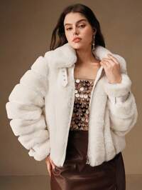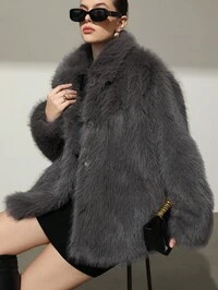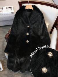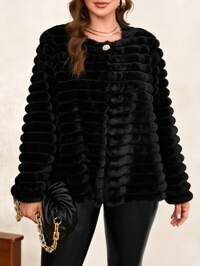 GalTymeGalTyme Plus Size Women Solid Color Long Sleeve Faux Fur Jacket, Autumn/Winter,Christmas,New Year,Thanksgiving,Party,Wedding,Beach,Graduati,Chic,Elegant,Casual,Going Out,Date,Appointment,Commute