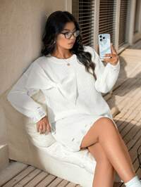 MaweiiMaweii Plus Size Women's Sweater Dress, Half-Sleeved Dress, Solid Black Color, Cutout, Asymmetrical, Loose And Casual, Black Spice Girl, Design Sense, Autumn And Winter, Halloween, Punk, Women's Daily Commuting Knitted Dress, Mini,London Party Knit,London Rave Knit,Scandi Party Knit,Y2K Knitwear,Y2K Sweater,Y2K Party Top ,Party Knit, Going Out Knit, Clubbing Sweater, Rave Knitwear,Gothic Knitwear, Alt Knit, Dark Academia Knit,Victorian Knit,Avant-Garde Knitwear, SHEIN Frenchy Plus Size Slit Sweater, Round Neck Autumn And Winter Long-Sleeved Women's Clothing, Outing Wear, Airport Wear, Personalized Sweater Matching ,Solid Color Wrap Around Sweater Dress, Casual Autumn/Winter,Christmas, Burgundy Sweater Dress, Christmas Sweater Dress, Casual Sweater Dress, Autumn And Winter Long-Sleeved Sweater Dress #10 Bestseller