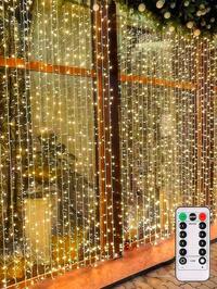 1pc 300 LED Fairy String Lights With Remote Control, 8 Modes, Waterproof, USB Powered Curtain Lights For Bedroom, Window, Party, Wedding, Christmas, Home Decor, Suitable For Party, Wedding, Christmas, Indoor/Outdoor Halloween (300LED - Warm White), Autumn, Christmas #6 Bestseller