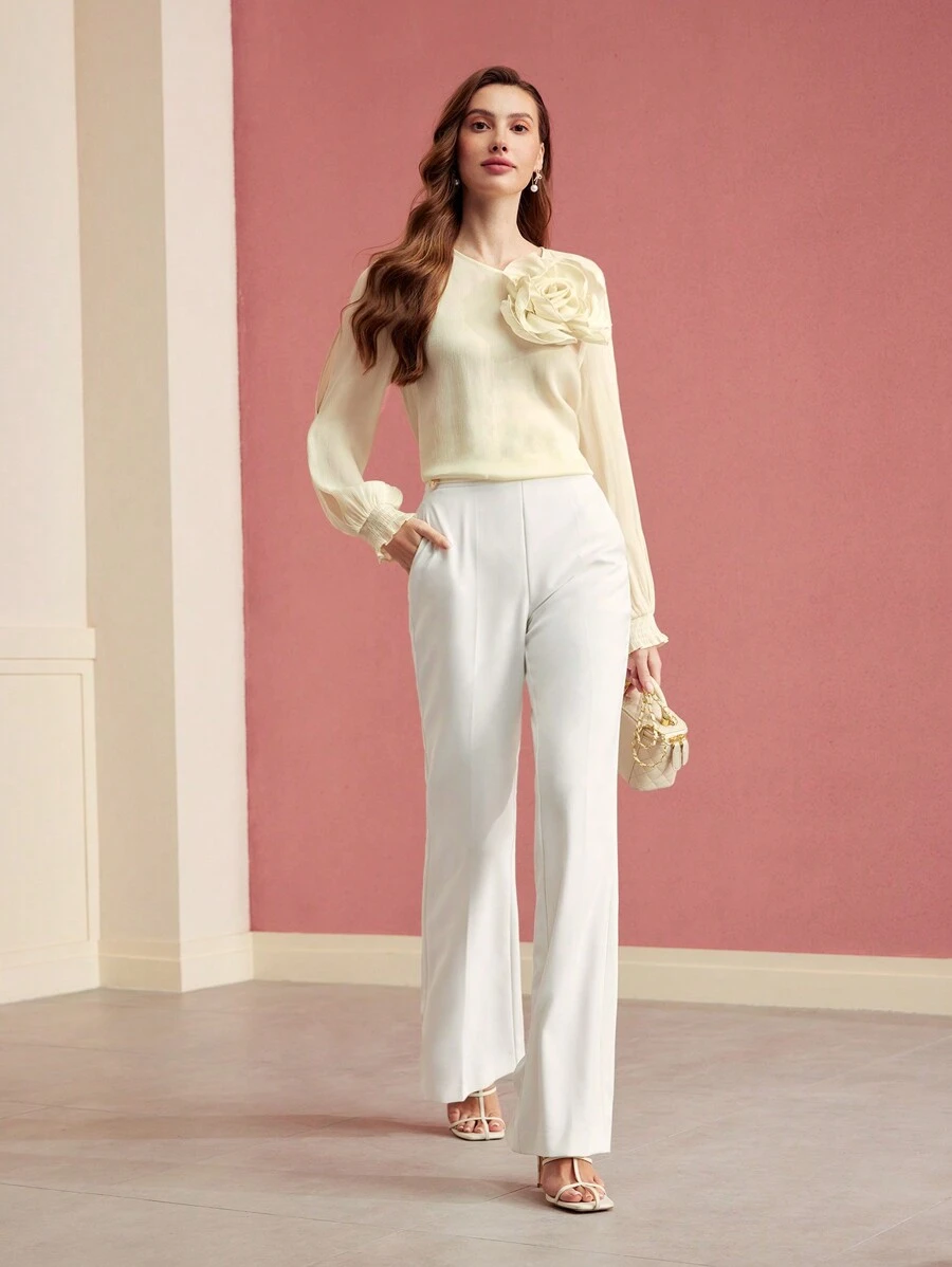 MOTF PREMIUM STEREO FLORAL KEYHOLE BACK BLOUSE,VALENTINE'S DAY,SPRING/SUMMER