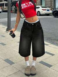 SHEIN SLAYR KIDSTeinityttöjen rento kevät-kesämalli, kevyesti pestyt, matalalla vyötäröllä varustetut, raakahelmalla varustetut farkkushortsit, vuoden 2000 kesän boheemit rantaloman konsertti-rave-festivaalit, teinityttöjen kesäshortsit, kesäloma, kevät, ranta tytöille, lomatyttöille, ystävänpäivä SHEIN Teini-ikäisen tytön kesäiset ranta-boho-rentoiset 3-osainen mustat, siniset, valkoiset pussilliset farkkushortsit, revityt vinotaskulla, boheemit rantakonsertit, rave-festivaalit, valmistujaiset, kesäloman rennot shortsit, koulu, kampus, yliopisto SHEIN Teini-ikäisen tytön kesäiset kevyesti pestyt, löysiä A-linjaiset, rennosti muotoillut farkkushortsit raakahelmalla, mukavat ja tyylikkäät, rento ja katutyyli, kesä, sopivat kevät- ja kesävaatteiksi, elegantit ja juhlavaatteet, kevätloman, kesän rantaloman asut, kesäshortsit, valkoiset farkkushortsit