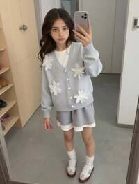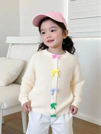 SparklynSparklyn Tween Girls Cardigans, Apricot Jacquard Round Neck Knit Cardigan With Bow Decor, Long Sleeve Short Soft Comfortable Sweater Suitable For Spring, Autumn, Winter, Daily, Outdoor, Travel, Vacation, Home, Daycare, Kids Play Girl Sweater Jacket Sweaters For Girls With Bows Kids Cardigan For Girls Girl Sweaters Cardigan Kids Sweaters For Girls Button