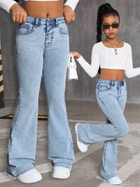 SHEIN Tween Girls Y2K Light Washed Rhinestone Embellished Pocket Wide Leg Loose Casual Jeans,Shiny Rhinestone Loose-Fitting Wide-Leg Jeans,Fall Winter Casual Jeans For Tween Girls,Baggy Jeans Girl,Airport,Wide Leg Pants,Streetwear,Funny Jeans,Back To School,Elegant Party Bling Outfits,Christmas Tween Girl OUTFITS #3 Bestseller