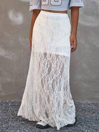 SHEIN SLAYR KIDSSHEIN Tween Girl Vacation White Woven Jacquard Textured A-Line Ruffle Hem Mini Skirt, Suitable For Party, Date, Valentine's Day, Holiday, Easter, Carnival, Beach Cruise, City Trip, Wedding Season, Afternoon Tea, Back To School/Graduation #5 Bestseller