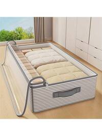 1pc Comforter, Blanket, Bedsheet, Clothing, Plush Doll Storage Bag, Drawer Organizer Bag, Gray Striped Under-Bed Storage Bag, Wardrobe Organizer Bag, Upgraded Thick Fabric, Spacious & Comfortable Handle, Suitable For Home, Bed, Warehouse Storage