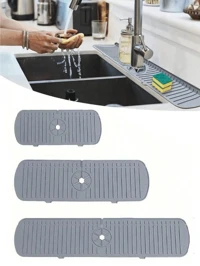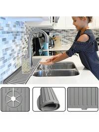 1pc Silicone Kitchen Sink Tray With Drainage Spout, Kitchen Faucet Sink Splash Guard, Silicone Faucet Water Catcher Mat, Sink Draining Pad Behind Faucet, Rubber Drying Mat, For Kitchen & Bathroom Countertop Protect, Kitchen Supplies, Bathroom Accessories, Kitchen Organizer, Household Kitchen & Bathroom Accessory ,Gift For My Mother,Silicone Mat,Mother's Day,Household Items,Kitchen Gadgets #7 Bestseller