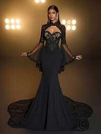 ElitaraElitara Elegant And Glamorous White Stretch Knit, Luxurious Satin Finish, Appliqué Details, Strapless Design, Faux Two-Piece Style, Large Bow Sleeves, Oversized Mermaid Silhouette, Train. Suitable For Weddings, Bridal Gowns, Formal Occasions, And Elaborately Embellished Wedding Dresses.,Wedding Party Dress #5 Bestseller