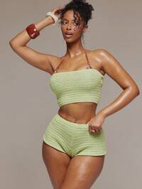 MUSERA Плетена на една кука прилепнала блуза без презрамки, къс топ бандо, пролетно-лято, фестивал в Ибиса, почивка, ваканция, сладък, секси, вечерен туризъм, клуб, тропическо съблазняване#1 Най-продавани