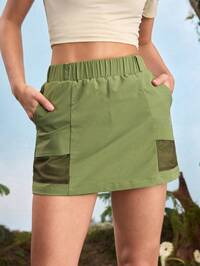 New Solid Color Multi-Pocket Button Casual Y2K Style Cute Khaki Skirt, Suitable For School, Club, Birthday Party, Christmas, Concert, Gym, Business, Daily Airport Travel, Street Style, Sportswear, Also Suitable For Teachers'' Daily Wear, Suitable For Spring, Summer, Autumn And Winter