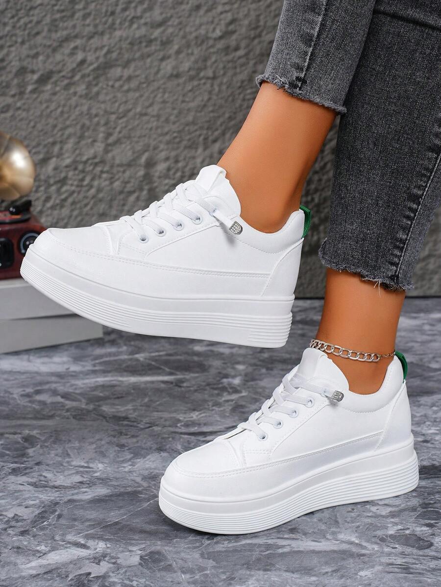 Women's Classic White Low-Top Casual Fashion Flat Sneakers, Outdoor Sports Shoes, Lightweight Soft-Soled Breathable Slip-On Platform Shoes