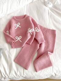 LMoss KidsLMoss Kids 2pcs White Crochet Floral Pattern Sweater Top And Pants Knit Set For Young Girl, Warm And Comfortable Fall Clothes,Great For Casual & Daily Wear & School Daily In Autumn & Winter, For Christmas, Girls Winter Clothes,Christmas Clothes, Party Wear, Daily Wear School Daily, Birthday Clothes, Princess Clothes,Mom And Daughter & Sisters Matching, #4 Bestseller