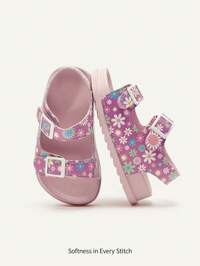 Cozy Pixies 1 Pair Cute Toddler Summer Floral Hook And Loop Princess Style Casual Soft Bottom Flat Sandals, Versatile