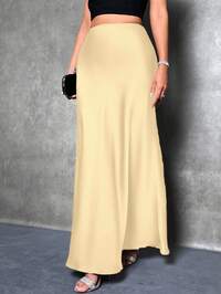 GlamineGlamine Дамска едноцветна дълга пола в стил русалка, сатенена пола, елегантна рокля, подходяща за партита, ежедневно носене, черна пола, дамска макси пола, елегантна пола, жълта макси пола, дълга пола за жени, дамски поли